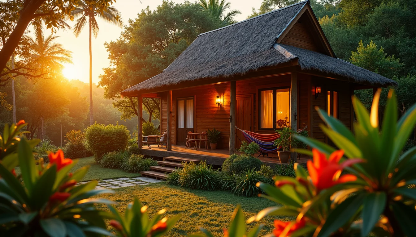 A beleza está nos detalhes: um banco de madeira na varanda, uma rede entre as árvores, a luz dourada do entardecer entrando pelas janelas amplas. Que sua casa seja um refúgio que conte a sua história, onde cada textura e cada sombra convidam ao silêncio e à contemplação.