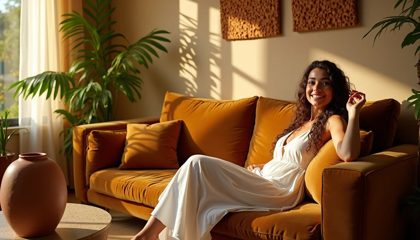 Em ambientes, aposte em almofadas de veludo oliva sobre um sofá de linho cru. O contraste de texturas eleva o tom terroso sem esforço.