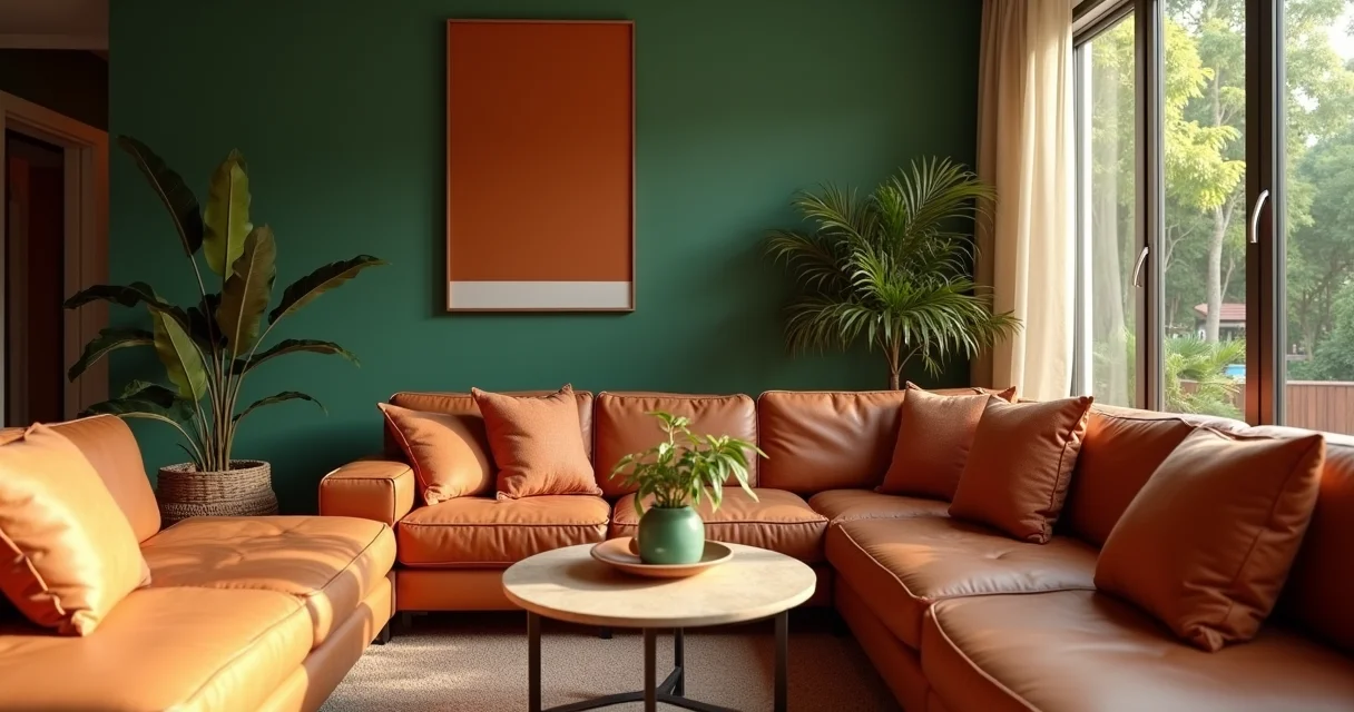 Tons Terrosos em Destaque: Use o Terracota ou Tom Terra em uma parede de destaque para trazer calor e aconchego. Funciona muito bem atrás do sofá ou da TV, criando um ponto focal interessante. Combine com móveis de madeira e plantas para um visual ainda mais natural.
