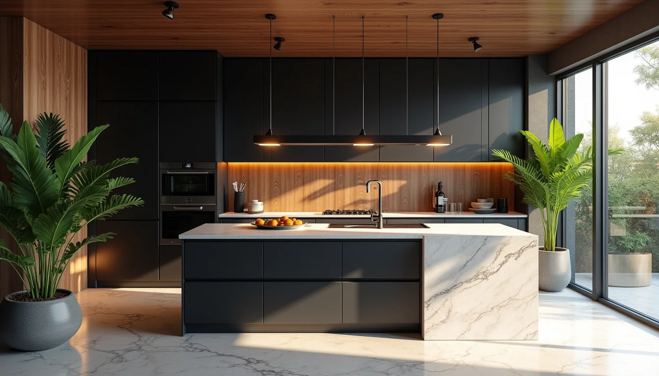 Em 2026, a tendência se consolida como clássico contemporâneo: o preto fosco encontra a madeira, o vidro e o metal em composições que são pura arquitetura de sensações. Sua cozinha pode ser o ponto focal de uma casa que respira design.