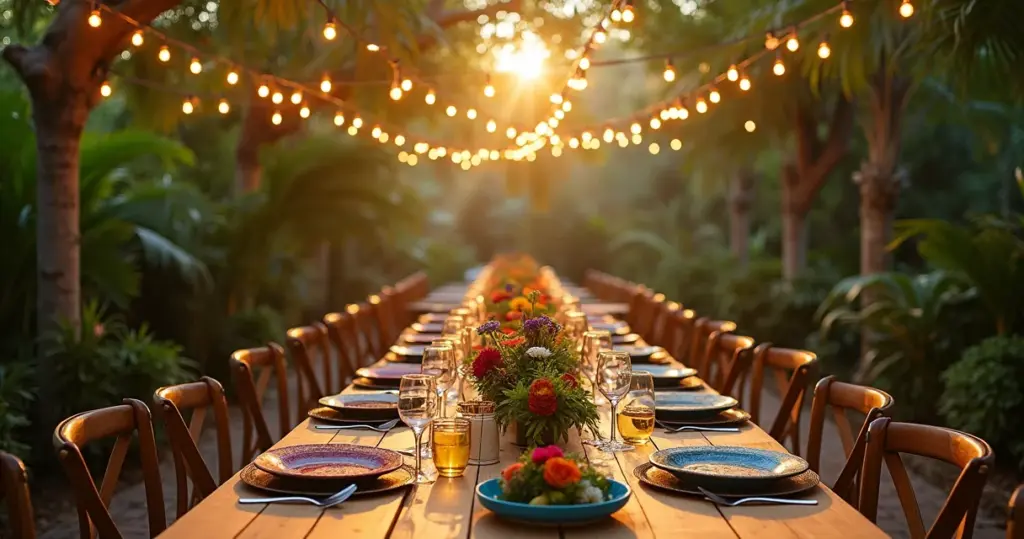 - Teste a iluminação no horário da festa. Monte uma mesa de prova uma semana antes, no mesmo horário do evento. A luz do entardecer muda tudo.