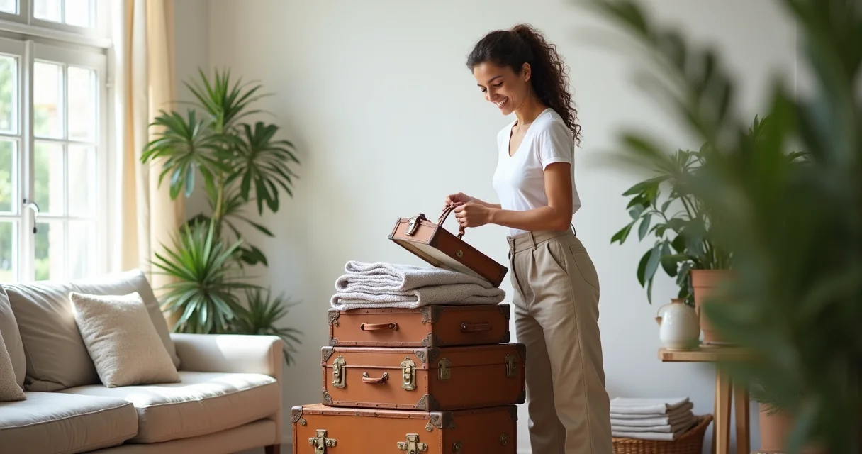 A dica de ouro: procure por malas de couro ou lona com ferragens envelhecidas. Elas podem ser empilhadas em um canto da sala, ao lado de um sofá de veludo, ou até servir de base para um abajur charmoso. A ideia é que elas pareçam ter acabado de chegar de uma longa viagem, cheias de histórias para contar. Para mais inspirações, vale a pena conferir tendências de decoração com malas antigas.