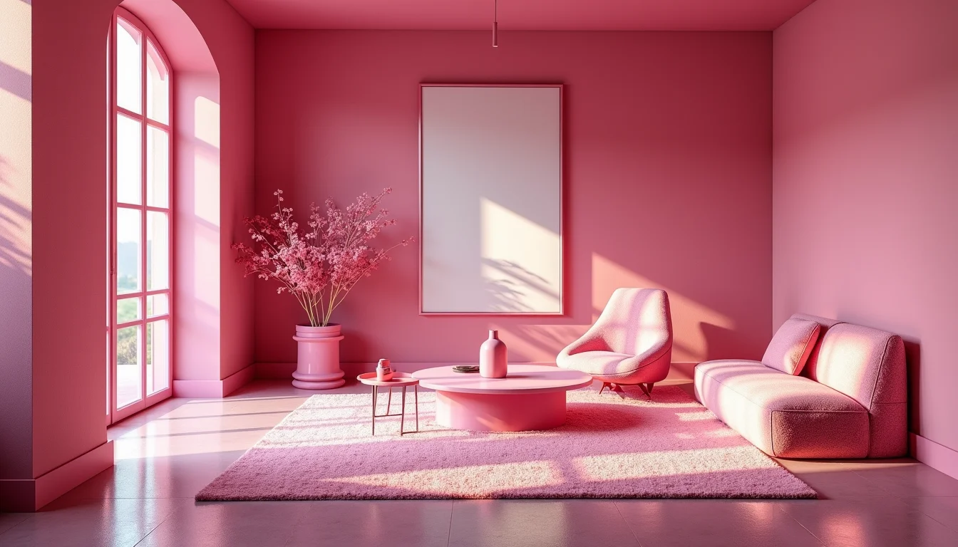 Regra de Ouro da Composição: Proporção 60-30-10. Aplique esta regra definindo uma cor principal (60%) – o rosa, neste caso –, uma cor secundária (30%) – como o branco ou dourado – e uma cor de destaque (10%) – talvez um toque de azul vibrante ou prata. Isso garante equilíbrio visual e evita que a decoração se torne excessiva.