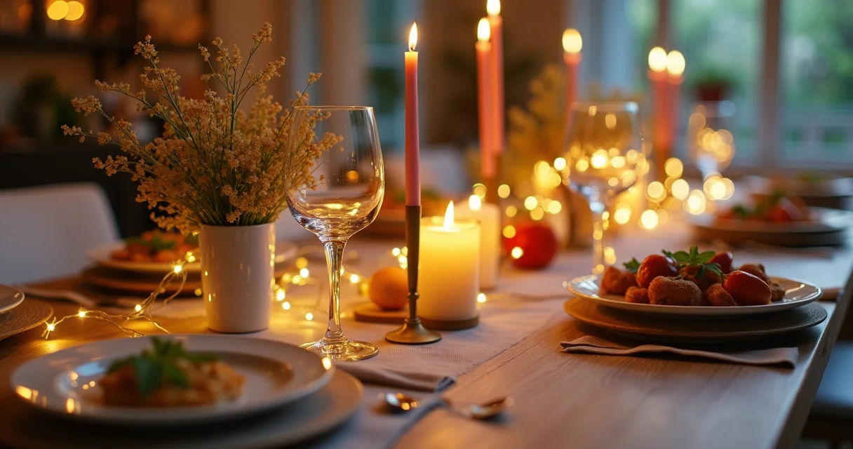 O segredo está em focar na atmosfera. Iluminação indireta, como luzinhas de LED ou velas seguras, transforma qualquer espaço. Escolha uma paleta de cores coesa, usando tons que remetam ao outono/inverno ou às festas de fim de ano, dependendo da sua celebração. Pense em arranjos de mesa minimalistas, com folhagens secas ou pequenos vasos com flores da estação.