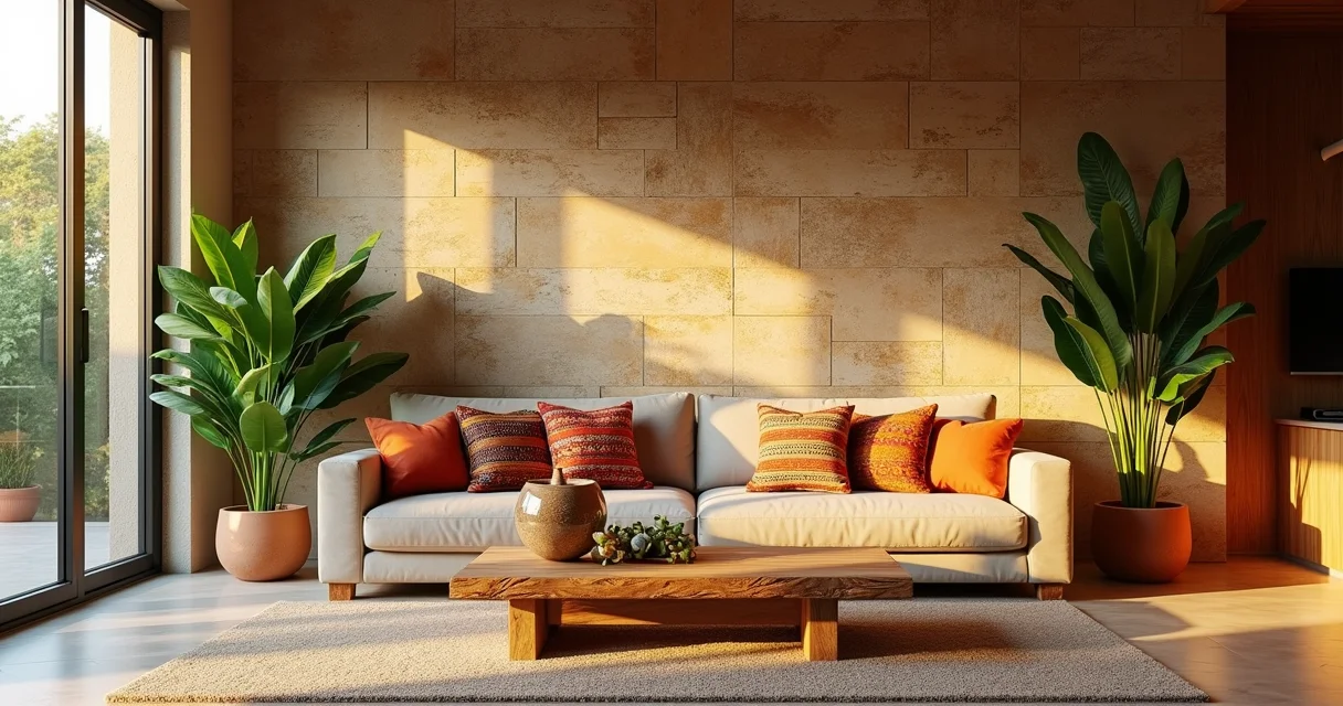 O segredo para uma sala incrível é o equilíbrio. A pedra traz força, mas precisa de elementos que a suavizem, como madeira e plantas.