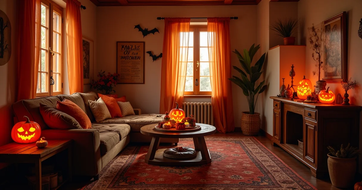 Invista em elementos que possam ser usados por muitos anos. Lanternas de papel em formatos de abóbora ou fantasmas, guirlandas com folhas secas e caveiras, e tecidos com estampas temáticas são ótimos exemplos. Lembre-se de que a iluminação é sua aliada: luzes baixas, pisca-piscas em tons quentes e velas criam a atmosfera perfeita. Não se esqueça de checar fontes de inspiração para ideias criativas e acessíveis.