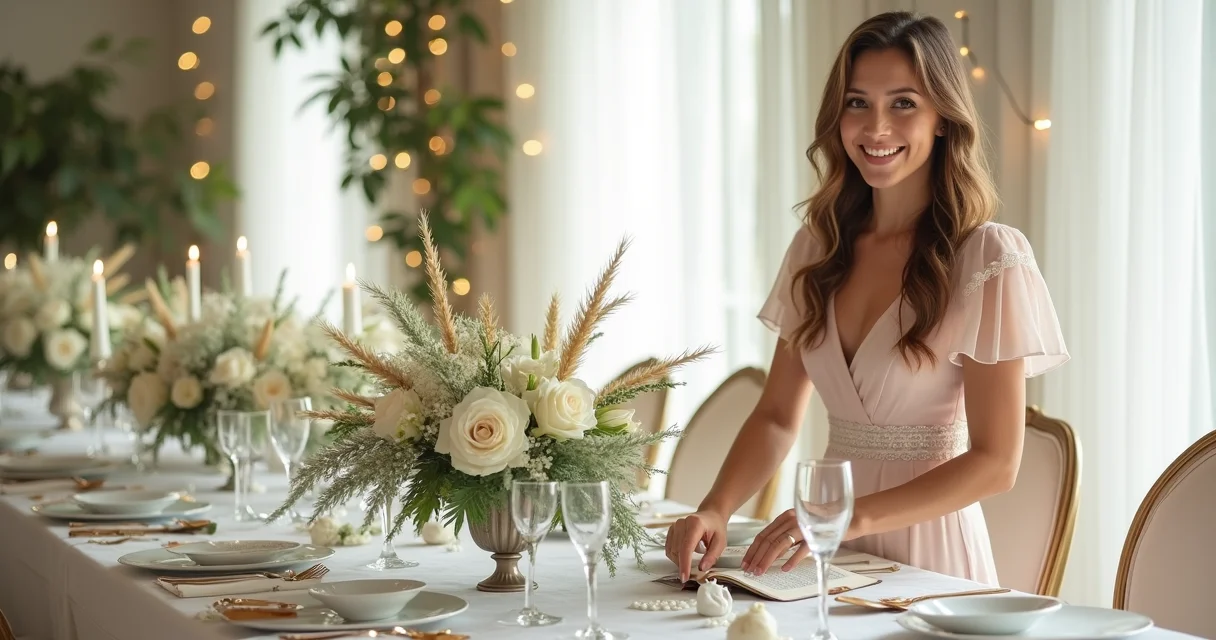 O estilo rústico, com madeira, linho e tons terrosos, combina perfeitamente com espaços ao ar livre ou salões com cara de fazenda. Já o minimalista, com linhas retas, branco puro e poucos elementos, é ideal para ambientes modernos e para quem prefere um clima mais sóbrio e contemplativo. Pense no que melhor representa esse momento único.