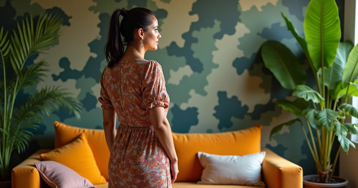 O segredo do camuflado é equilibrar com móveis mais neutros. Assim, a parede brilha sem sobrecarregar o ambiente.