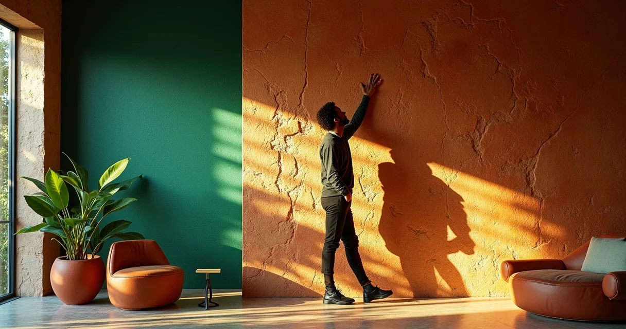 • Aqui está o detalhe da iluminação: Use spots de LED com temperatura de cor entre 2700K e 3000K (branco quente) para realçar as texturas. Posicione-os em ângulo de 30 graus para criar sombras profundas que destacam o relevo, transformando uma parede plana em uma experiência sensorial.