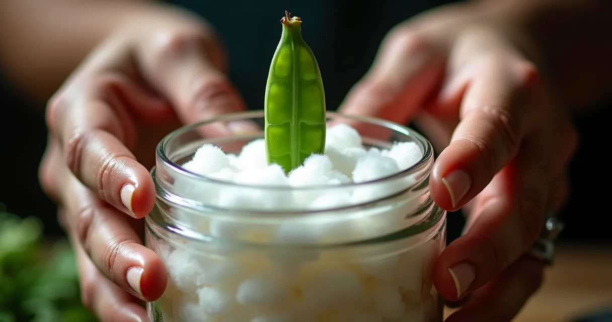 O grande segredo? O algodão serve como um suporte úmido perfeito para a semente. Ele mantém a umidade constante sem sufocar o feijão, criando condições ideais para o início da vida.